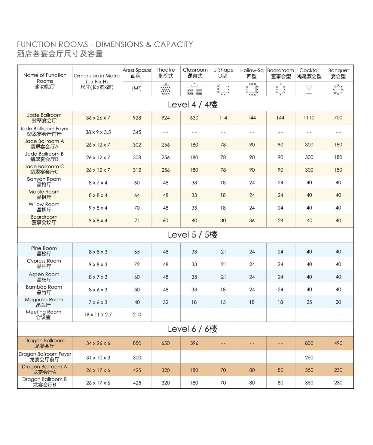 Easily accessible from Shanghai’s main traffic artery, West Yan An elevated road, The Longemont offers 3,050 square meters of combined banquet and meeting space, including the hotel’s iconic 928 square meters Jade Ballroom, which may be divided into three spaces, and 345 square meters foyer located on level 4, an 850 square meters Dragon Ballroom, that may be divided into two spaces, with a 300 square meters foyer located on level 6, and ten multi-function meeting rooms.The contemporary and imposing Jade Ballroom on level 4, boasting a bespoke design showcasing both Chinese and international influences with the masterly use of bold colors, intriguing lattice patterned ceiling and carpets with distinctive oriental motifs, is simply breathtaking. With a ceiling height of 7 meters and four embedded independent LED screens, it can accommodate up to 1,110 guests.